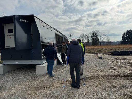 In den vergangenen Wochen hat sich vor Ort einiges getan: So wurden unter anderem ein Pufferspeicher mit 102 Kubikmetern Fassungsvermögen sowie eine 600 kW Großwärmepumpe angeliefert und installiert. Die Wärmegewinnung erfolgt künftig über die Kombination aus Wärmepumpe und einer 330 kW Hackschnitzelheizung. Damit setzt das Projekt auf ein nachhaltiges, regionales und zukunftsfähiges Versorgungskonzept.