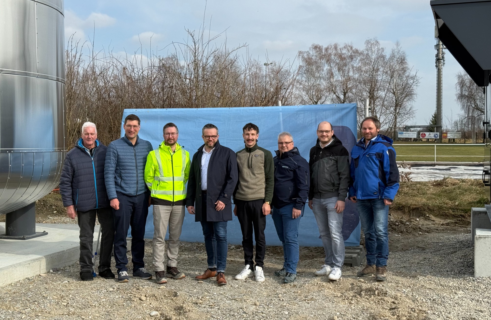 Bürgermeister Franz Lehner (Stammham), Bürgermeister Benedikt Dittmann (Marktl), Josef Heigermoser (Abteilungsleitung Wärme), Christoph Strasser (CEO MaxSolar), Maximilian Huber (Projektleitung Wärme), Jürgen Kragulji (Projektleitung Wärme), Felix Glas (Leiter Bauamt), Josef Schupfner (Geschäftsführer Schupfner GmbH)